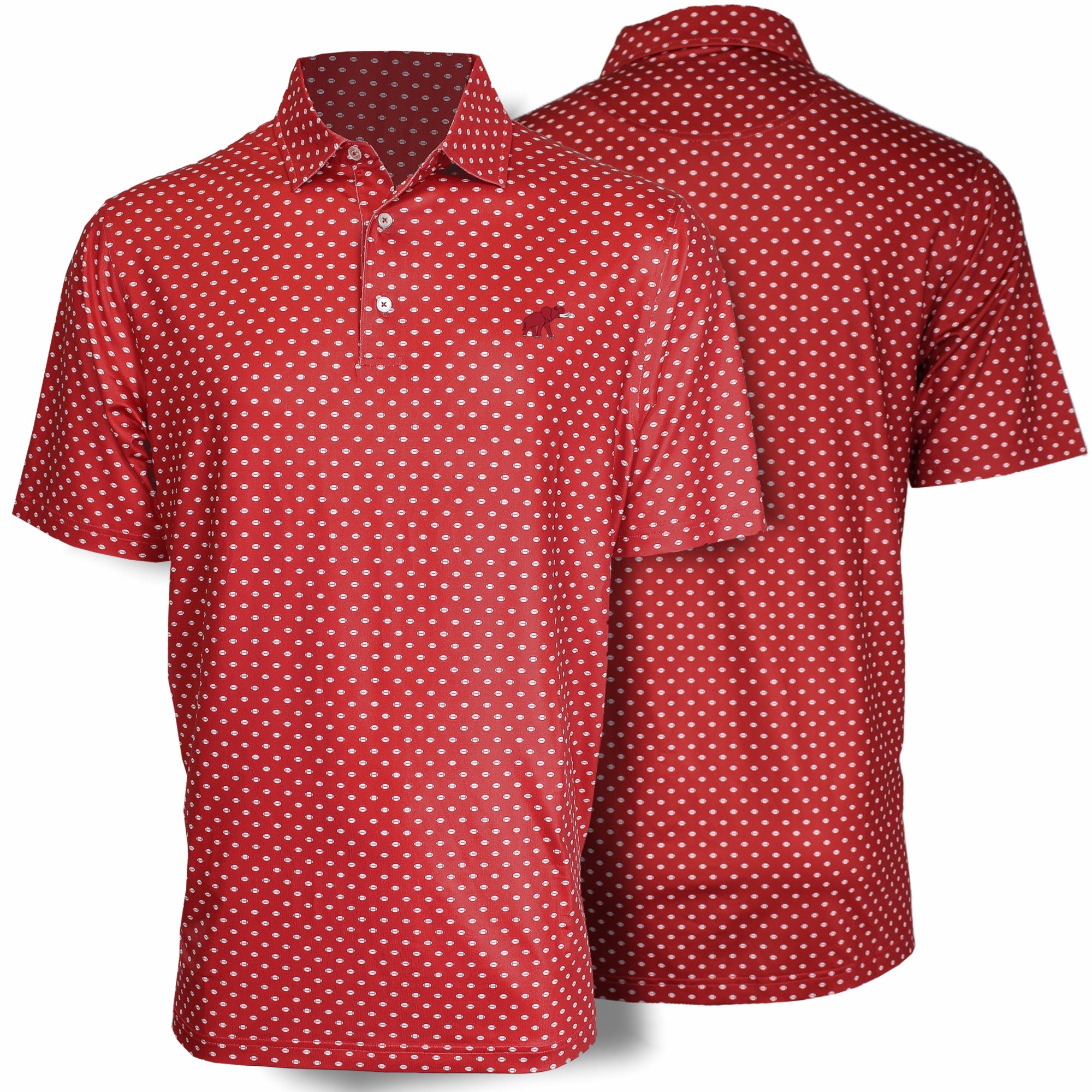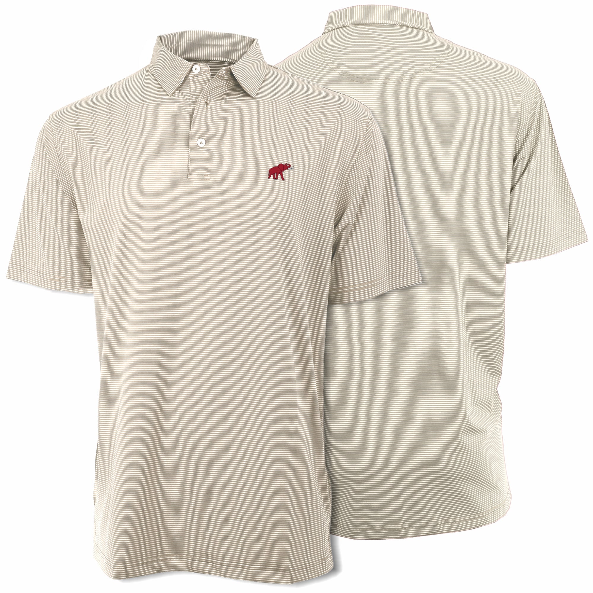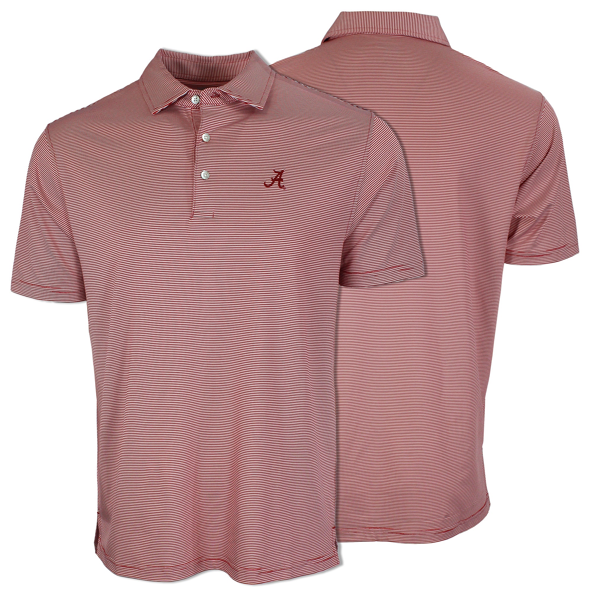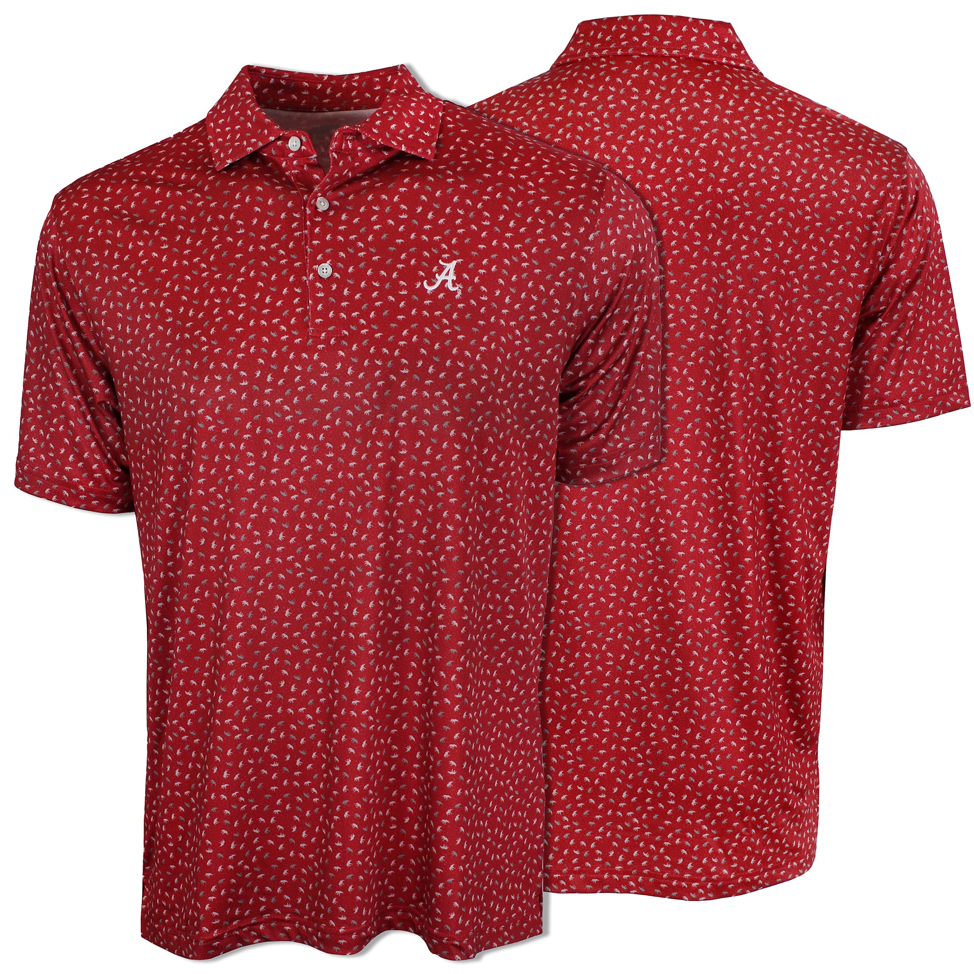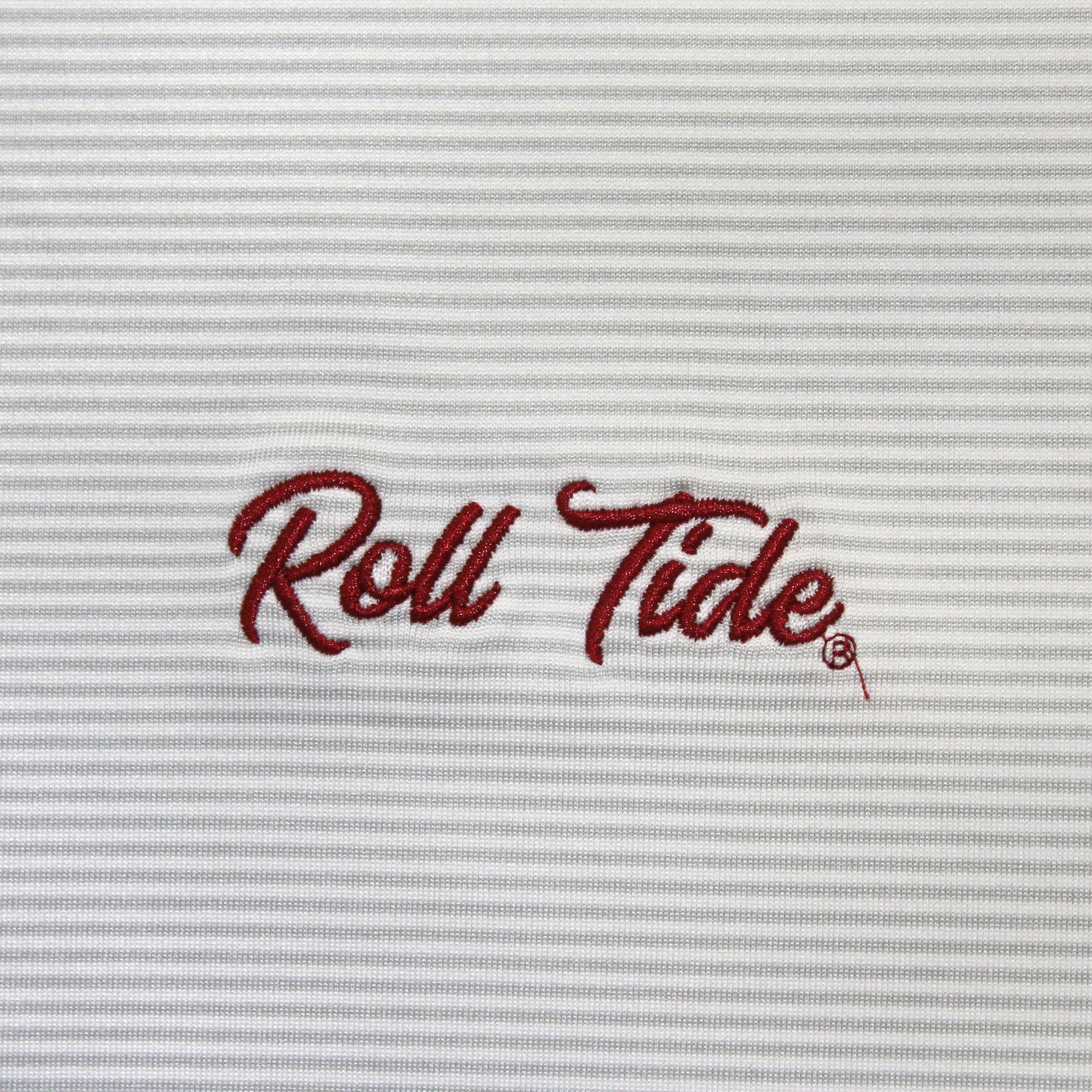 94% Polyester / 6% Spandex-Pique Self collar 3 Button placket Custom fit: Not too slim, not too loose Tide Hoops embroidery on Crimson/Grey; Bama Basketball...